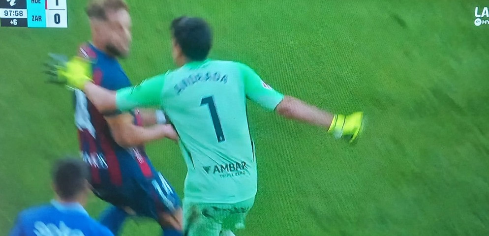 Le immagini stanno facendo il giro del mondo: il portiere del Zaragoza (serie B spagnola), l'argentino Andrada, ha dato un pungno al giocatore dell'Huesca Pulido nel finale di partita del derby dell'Aragona.